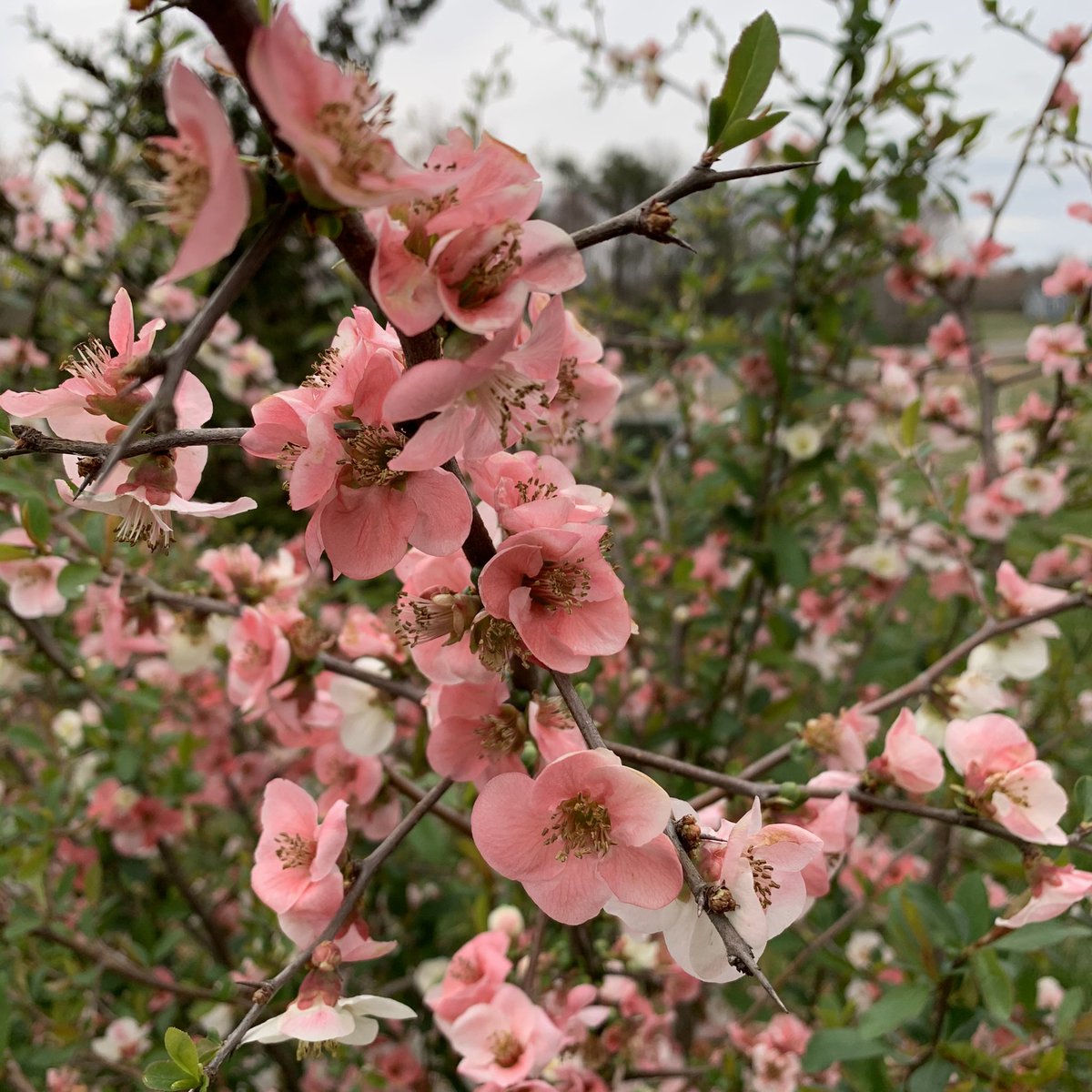 Kan toyo dwarf flowering quince. 1001fidan chaenomeles speciosa toyo nishiki. This fun plant makes a surprise each spring with its blooms changing color. I have been pruning her to be less of a thicket (which is the flowering quince tendency) but rather to expose the branches.